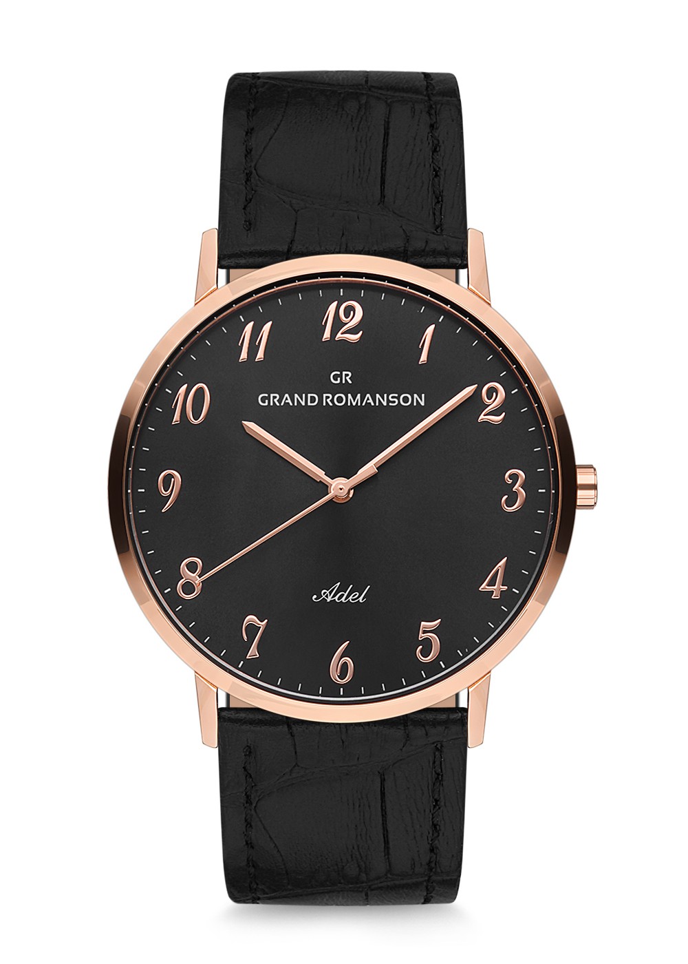 Erkek - Düz - Rose - Si̇yah - Doğal Deri̇ Kordon - Si̇yah - 3 Atm - Grand Romanson