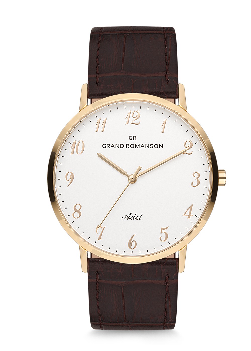 Erkek - Düz - Sari - Gümüş - Doğal Deri̇ Kordon - Kahverengi̇ - 3 Atm - Grand Romanson
