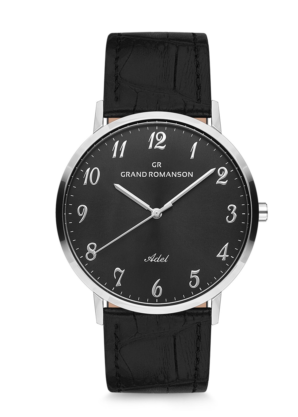 Erkek - Düz - Gümüş - Si̇yah - Doğal Deri̇ Kordon - Si̇yah - 3 Atm - Grand Romanson