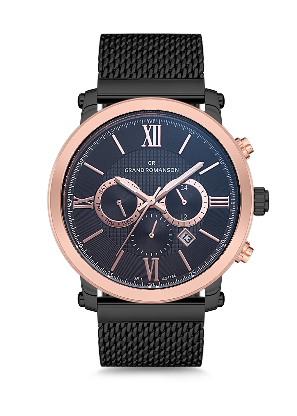 Erkek - Kronometre - Rose Si̇yah - Gri̇ - Çeli̇k Örme Kordon - 3 Atm - Sertleşti̇ri̇lmi̇ş Mi̇neral Cam - Grand Romanson