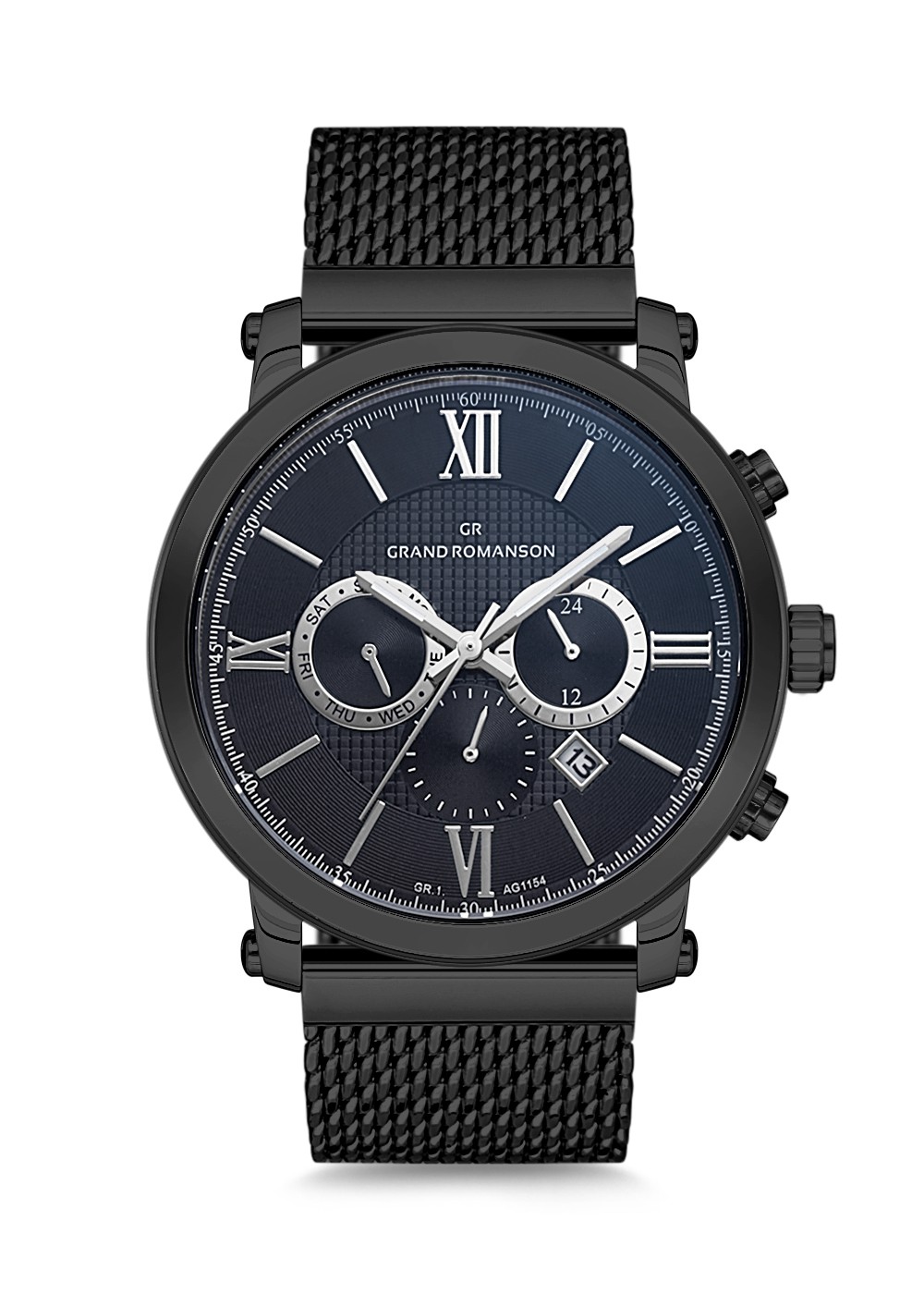 Erkek - Kronometre - Si̇yah - Si̇yah - Çeli̇k Örme Kordon - 3 Atm - Sertleşti̇ri̇lmi̇ş Mi̇neral Cam - Grand Romanson