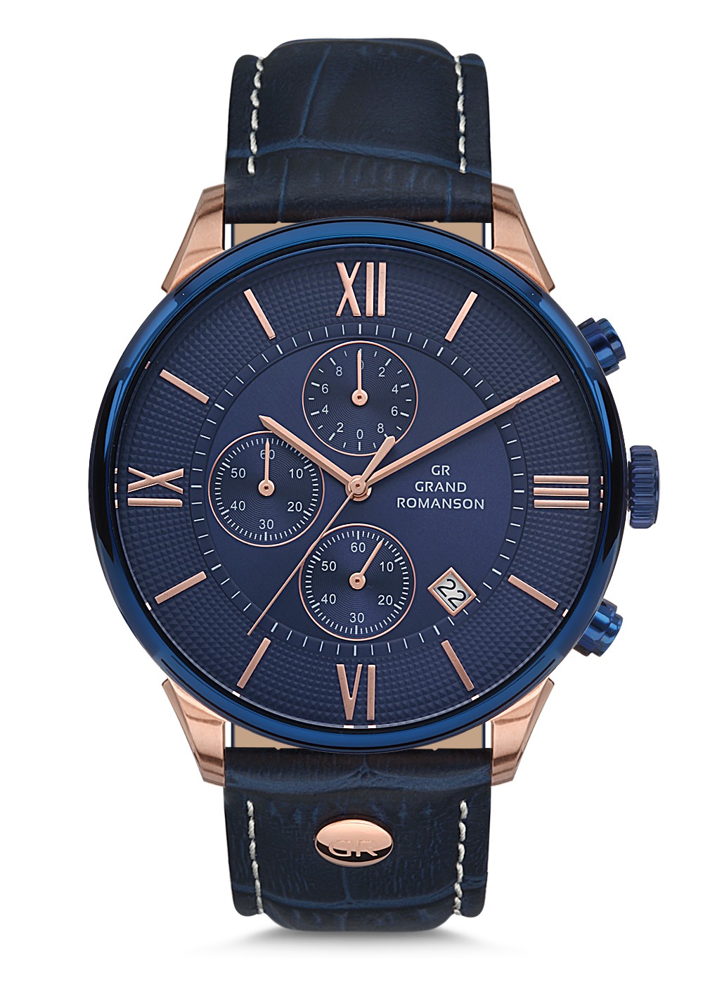 Erkek - Kronometre - Rose Mavi̇ - Mavi̇ - Doğal Deri̇ Kordon - Mavi̇ - 3 Atm - Sertleşti̇ri̇lmi̇ş Mi̇neral Cam - Grand Romanson - 44