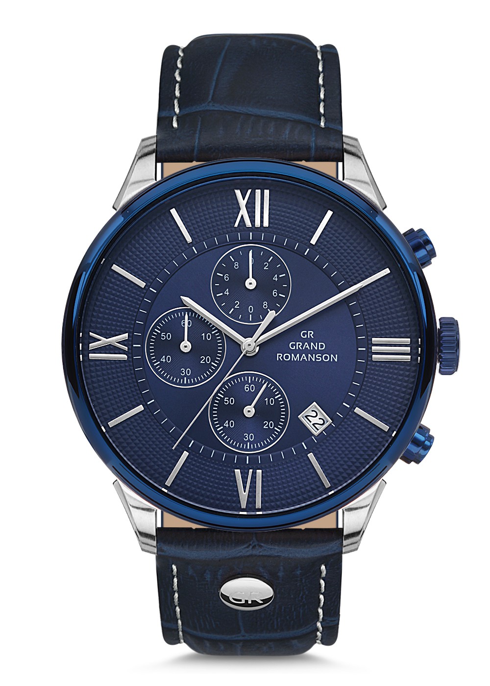 Erkek - Kronometre - Gümüş Mavi̇ - Mavi̇ - Doğal Deri̇ Kordon - Mavi̇ - 3 Atm - Sertleşti̇ri̇lmi̇ş Mi̇neral Cam - Grand Romanson - 44