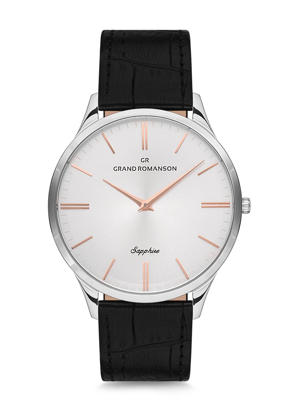 Erkek - Düz - Gümüş - Gümüş - Doğal Deri̇ Kordon - Si̇yah - 3 Atm - Grand Romanson