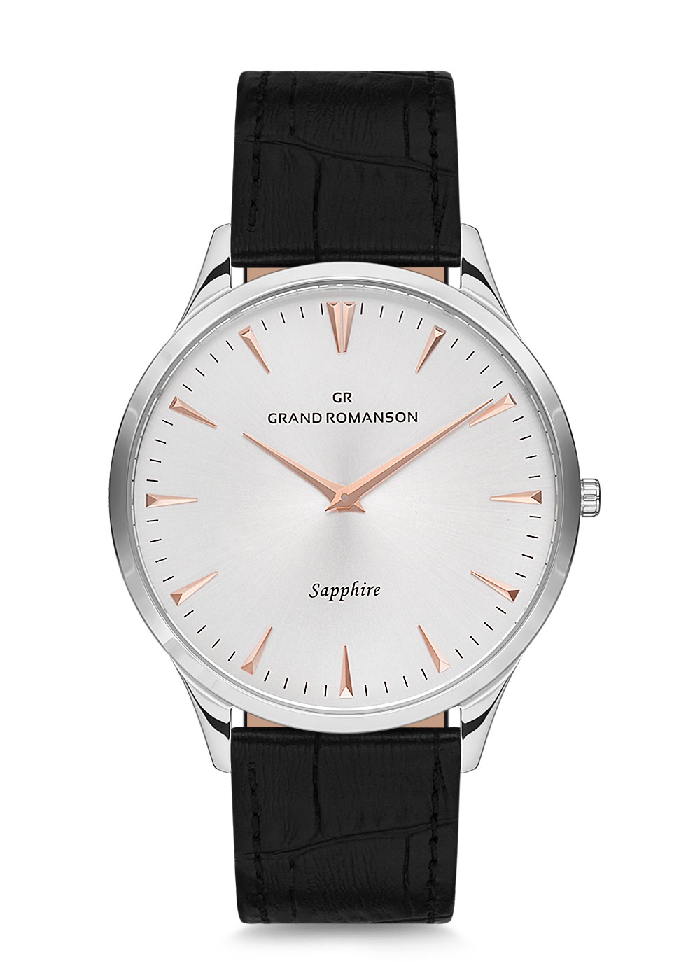 Erkek - Düz - Gümüş - Gümüş - Doğal Deri̇ Kordon - Si̇yah - 3 Atm - Grand Romanson