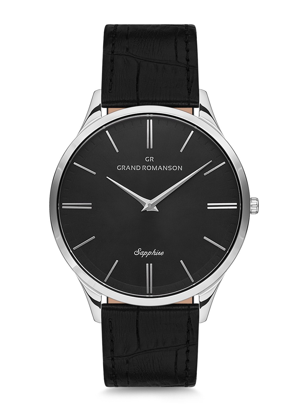 Erkek - Düz - Gümüş - Si̇yah - Doğal Deri̇ Kordon - Si̇yah - 3 Atm - Grand Romanson