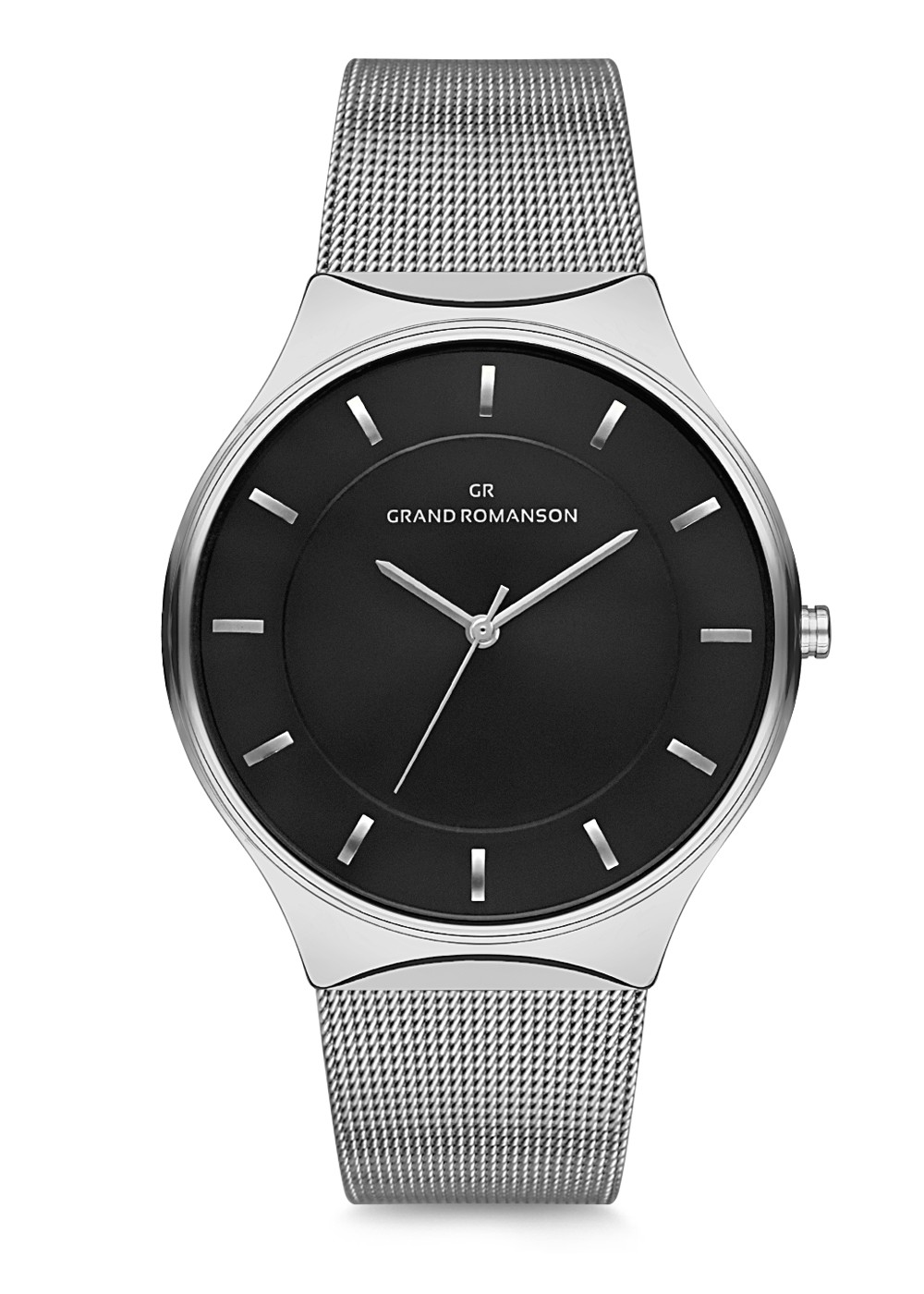 Erkek - Düz - Gümüş - Si̇yah - Çeli̇k Örme Kordon - 3 Atm - Sertleşti̇ri̇lmi̇ş Mi̇neral Cam - Grand Romanson