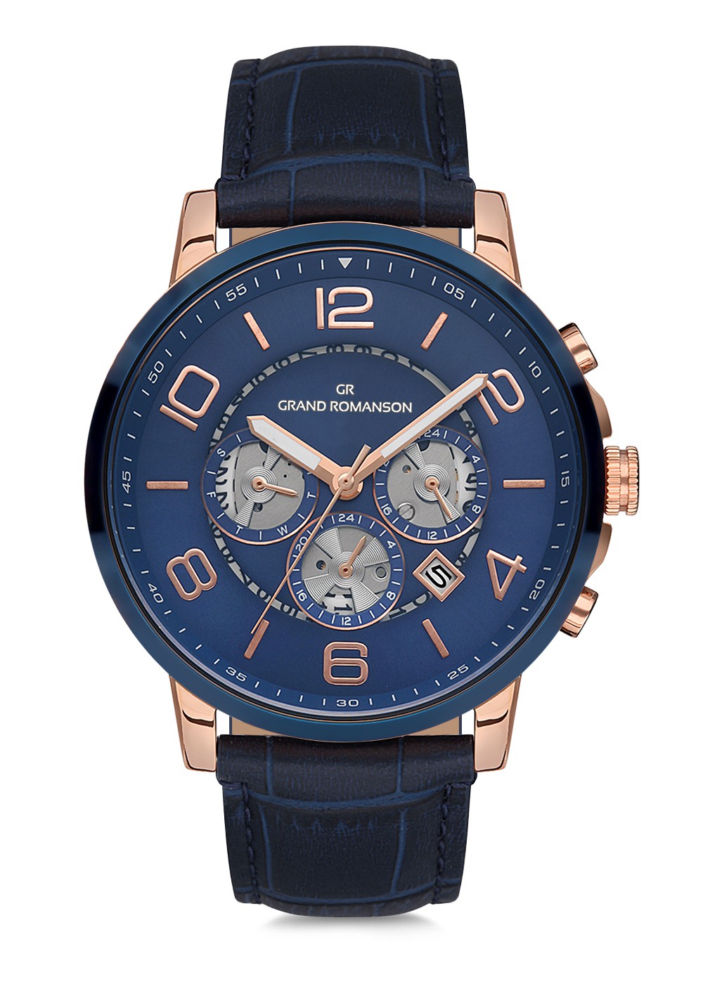 Erkek - Multi̇ Fonksi̇yon - Rose Mavi̇ - Mavi̇ - Doğal Deri̇ Kordon - Mavi̇ - 3 Atm - Grand Romanson