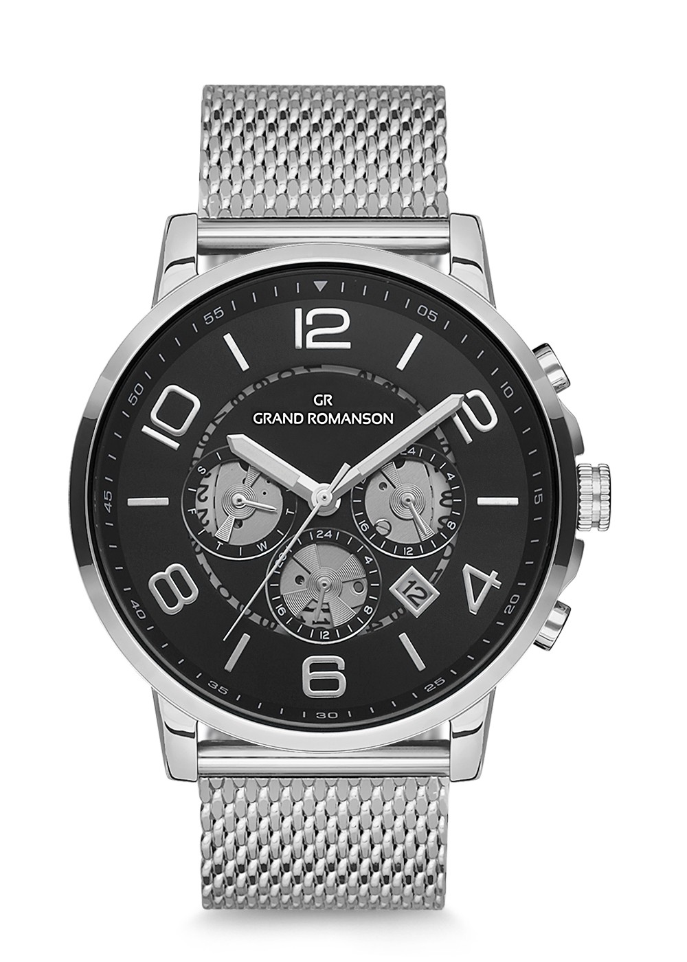 Erkek - Multi̇ Fonksi̇yon - Gümüş - Si̇yah - Çeli̇k Örme Kordon - 3 Atm - Sertleşti̇ri̇lmi̇ş Mi̇neral Cam - Grand Romanson