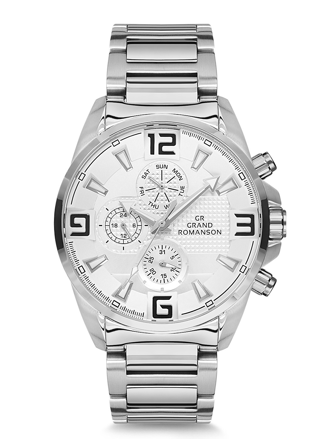Erkek - Kronometre - Gümüş - Gümüş - Paslanmaz Masi̇f Çeli̇k - 3 Atm - Grand Romanson