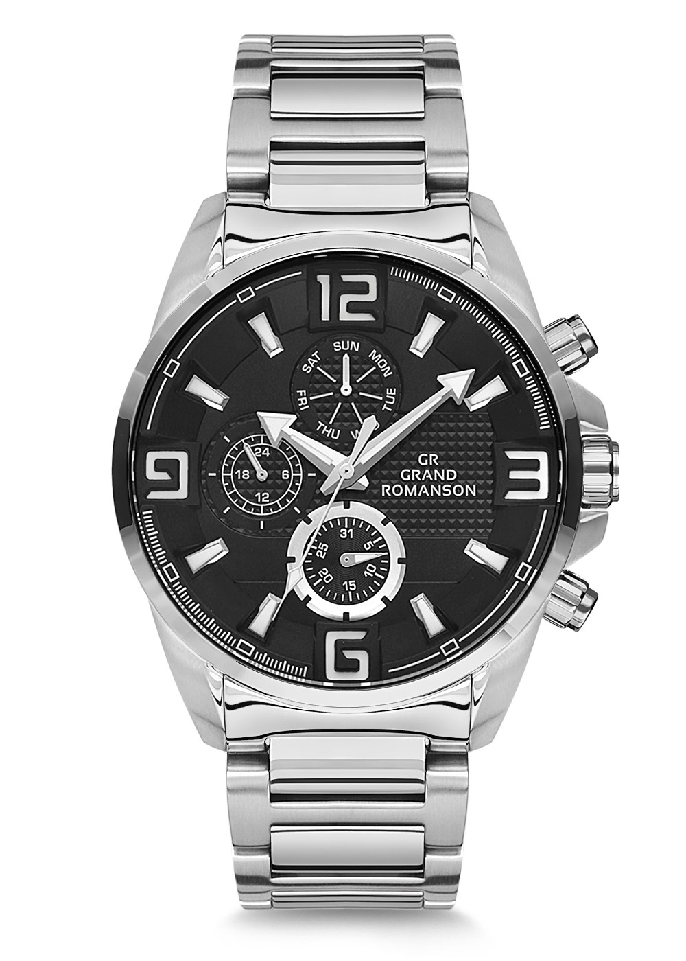 Erkek - Kronometre - Gümüş - Si̇yah - Paslanmaz Masi̇f Çeli̇k - 3 Atm - Grand Romanson