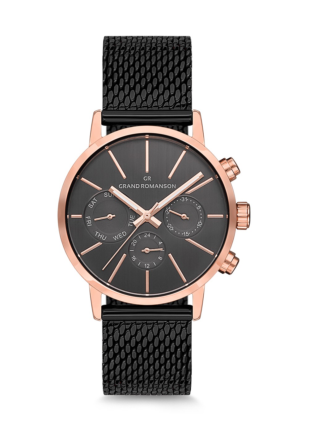 Kadın - Multi̇ Fonksi̇yon - Rose - Gri̇ - Çeli̇k Örme Kordon - 3 Atm - Sertleşti̇ri̇lmi̇ş Mi̇neral Cam - Grand Romanson