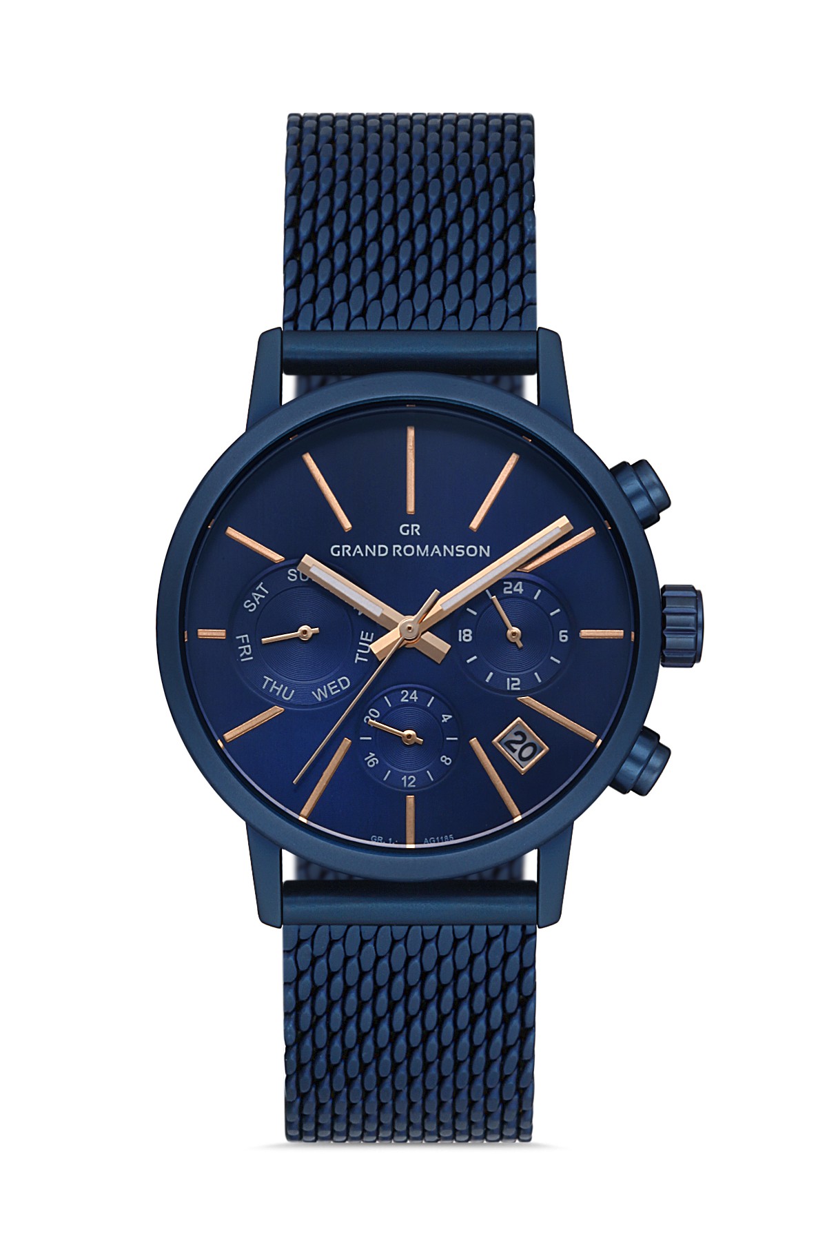 Kadın - Multi̇ Fonksi̇yon - Mavi̇ - Mavi̇ - Çeli̇k Örme Kordon - 3 Atm - Sertleşti̇ri̇lmi̇ş Mi̇neral Cam - Grand Romanson