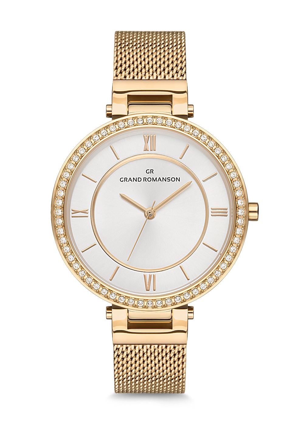 Kadın - Taşli - Sari - Gümüş - Çeli̇k Örme Kordon - 3 Atm - Sertleşti̇ri̇lmi̇ş Mi̇neral Cam - Grand Romanson