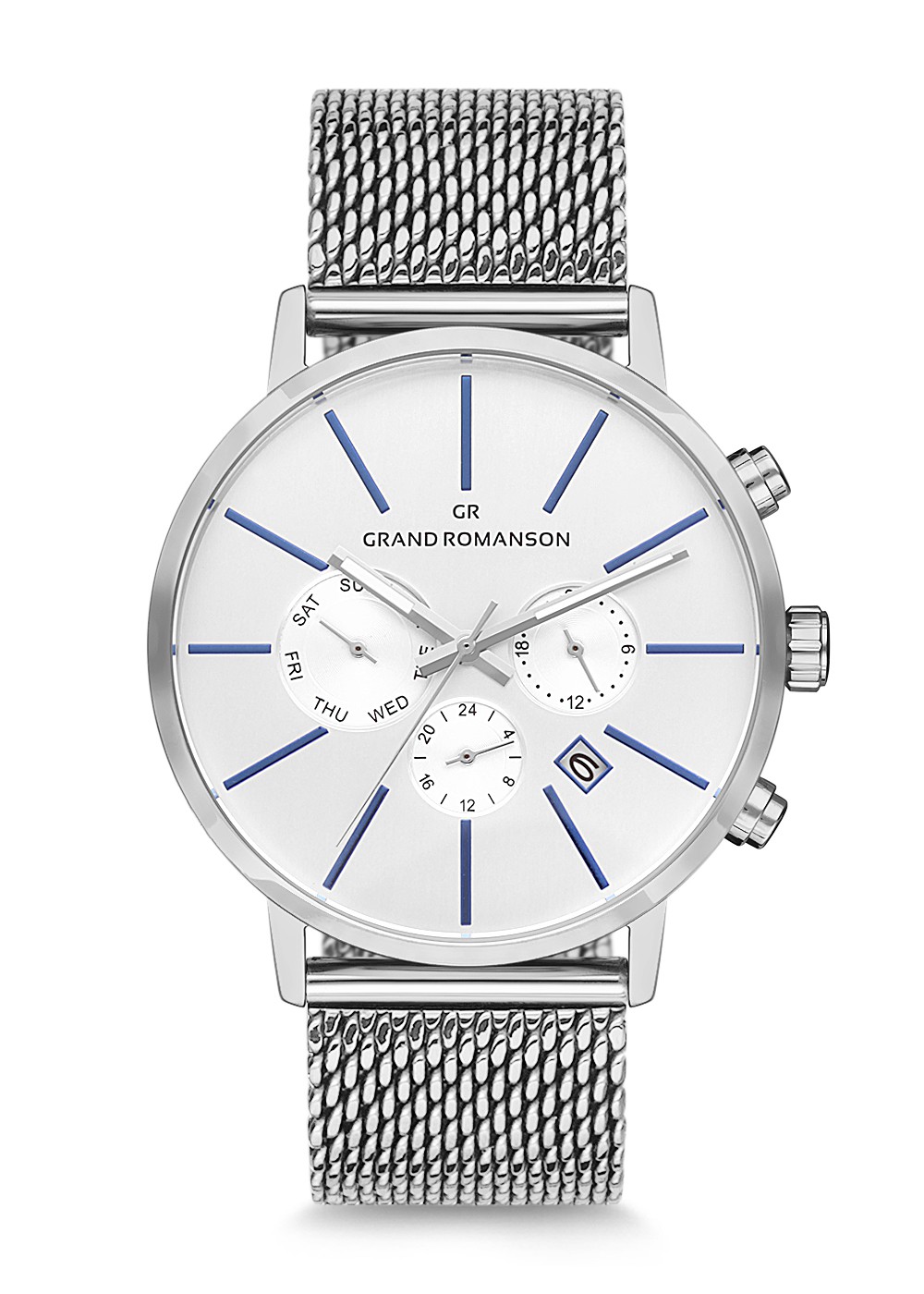 Erkek - Multi̇ Fonksi̇yon - Gümüş - Gümüş - Çeli̇k Örme Kordon - 3 Atm - Sertleşti̇ri̇lmi̇ş Mi̇neral Cam - Grand Romanson