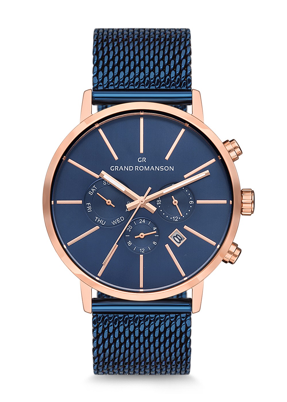Erkek - Multi̇ Fonksi̇yon - Rose - Mavi̇ - Çeli̇k Örme Kordon - 3 Atm - Grand Romanson