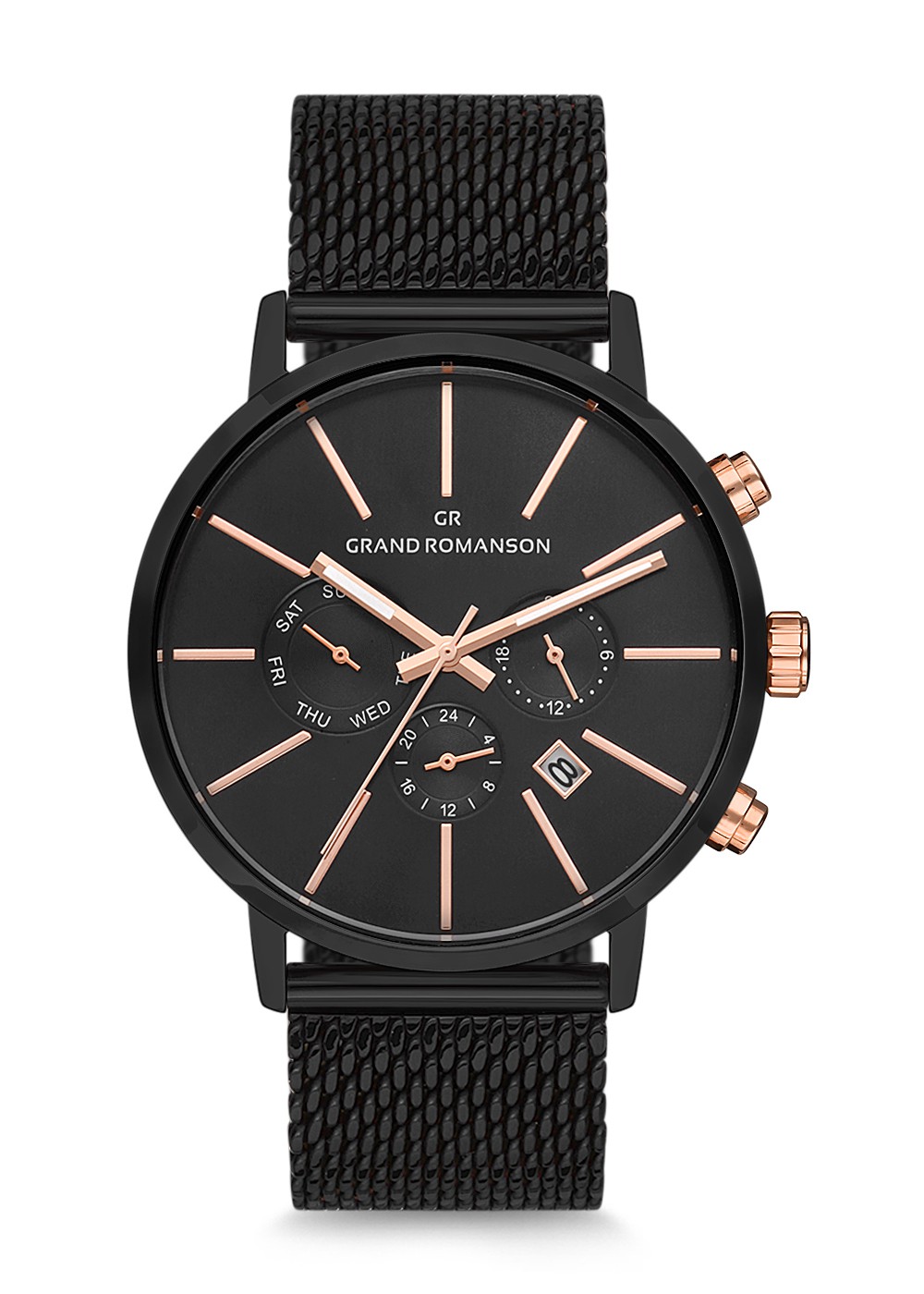 Erkek - Multi̇ Fonksi̇yon - Si̇yah - Si̇yah - Çeli̇k Örme Kordon - 3 Atm - Sertleşti̇ri̇lmi̇ş Mi̇neral Cam - Grand Romanson