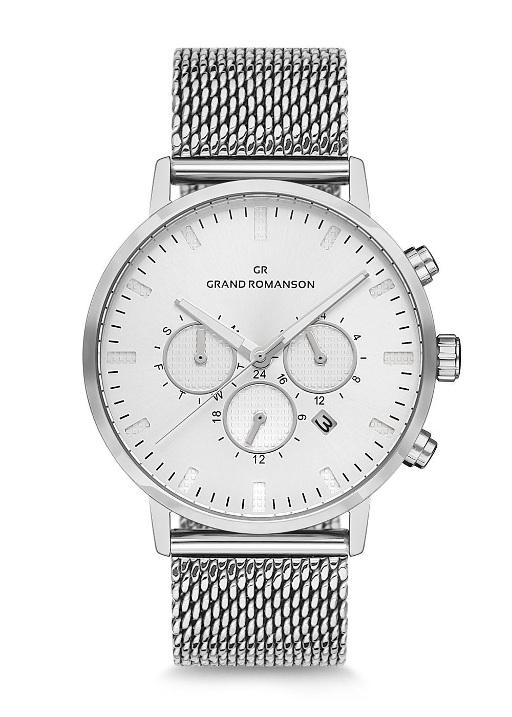 Erkek - Multi̇ Fonksi̇yon - Gümüş - Gümüş - Çeli̇k Örme Kordon - 3 Atm - Grand Romanson