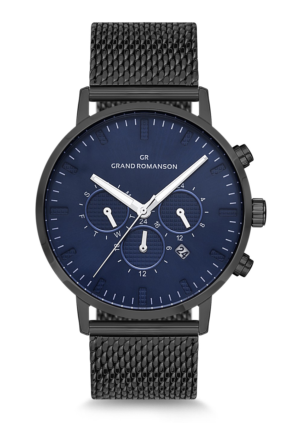 Erkek - Multi̇ Fonksi̇yon - Si̇yah - Mavi̇ - Çeli̇k Örme Kordon - 3 Atm - Grand Romanson