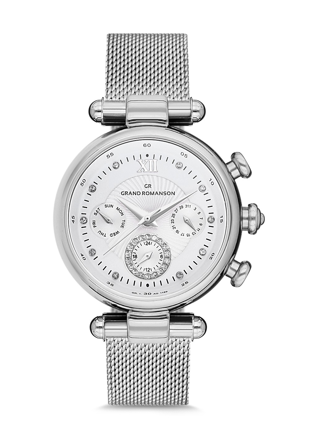 Kadın - Multi̇ Fonksi̇yon - Gümüş - Gümüş - Çeli̇k Örme Kordon - 3 Atm - Sertleşti̇ri̇lmi̇ş Mi̇neral Cam - Grand Romanson