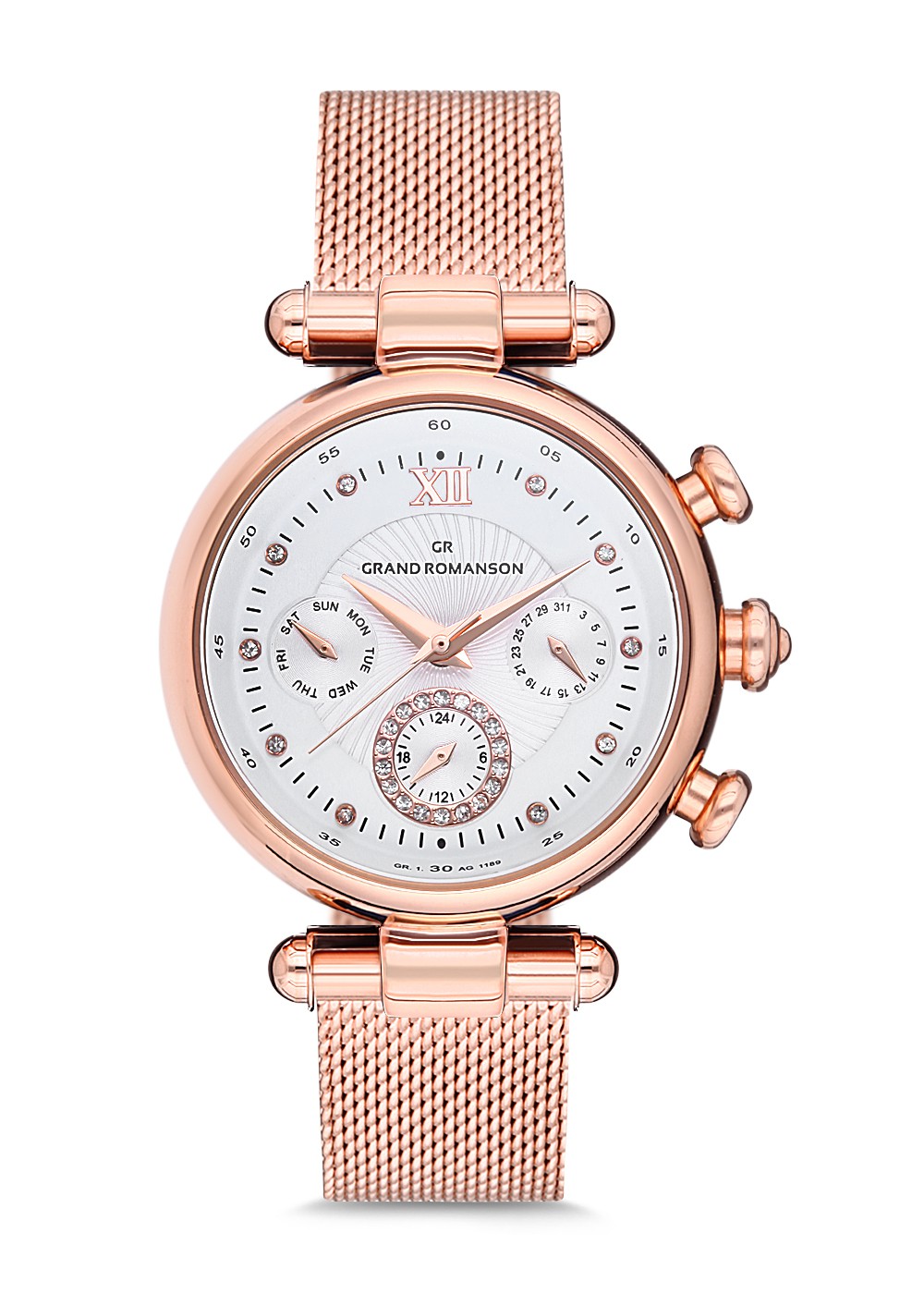 Kadın - Multi̇ Fonksi̇yon - Rose - Gümüş - Çeli̇k Örme Kordon - 3 Atm - Sertleşti̇ri̇lmi̇ş Mi̇neral Cam - Grand Romanson