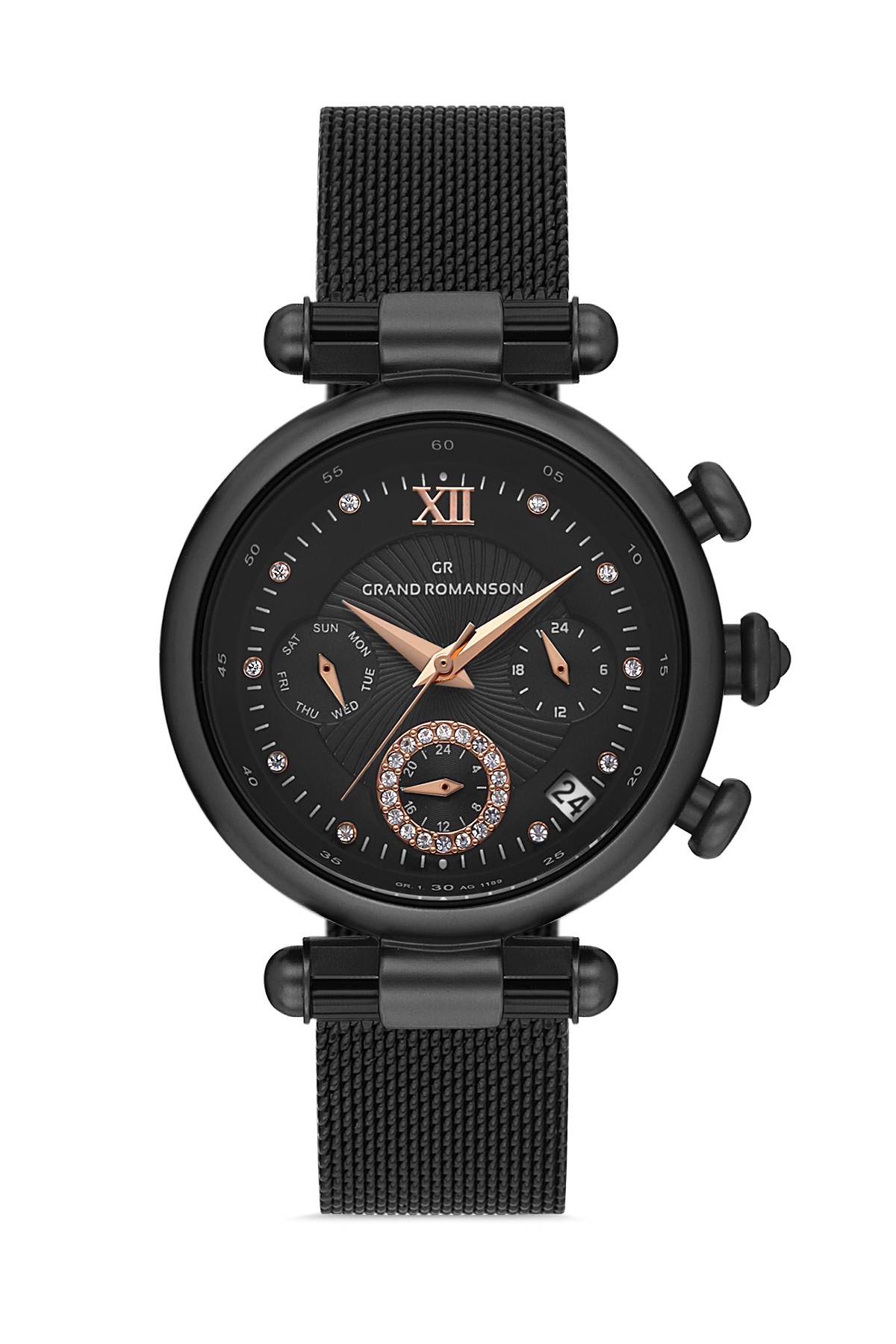 Kadın - Multi̇ Fonksi̇yon - Si̇yah - Si̇yah - Çeli̇k Örme Kordon - 3 Atm - Sertleşti̇ri̇lmi̇ş Mi̇neral Cam - Grand Romanson