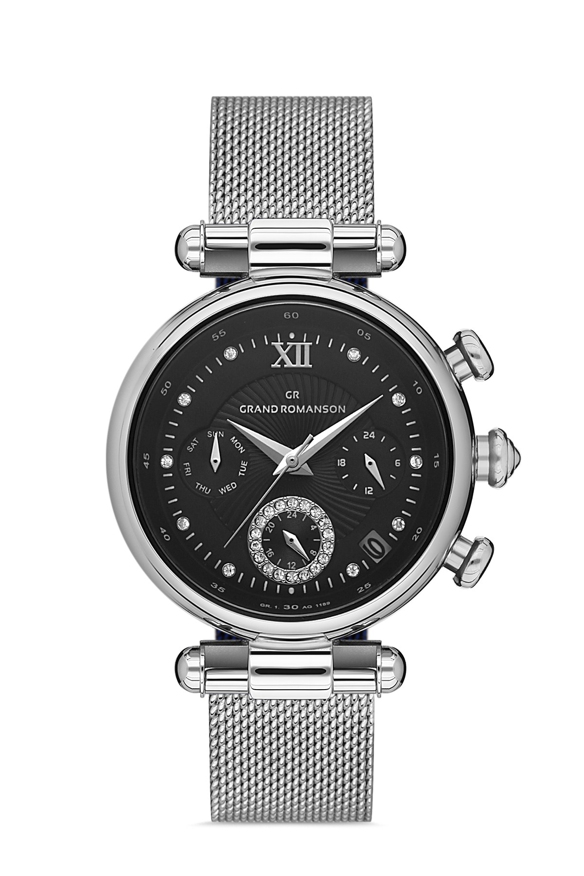 Kadın - Multi̇ Fonksi̇yon - Gümüş - Si̇yah - Çeli̇k Örme Kordon - 3 Atm - Sertleşti̇ri̇lmi̇ş Mi̇neral Cam - Grand Romanson