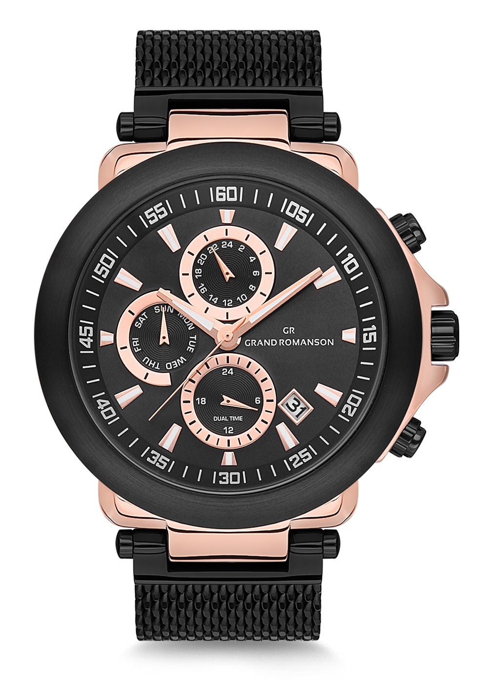 Erkek - Multi̇ Fonksi̇yon - Rose Si̇yah - Si̇yah - Çeli̇k Örme Kordon - 3 Atm - Sertleşti̇ri̇lmi̇ş Mi̇neral Cam - Grand Romanson
