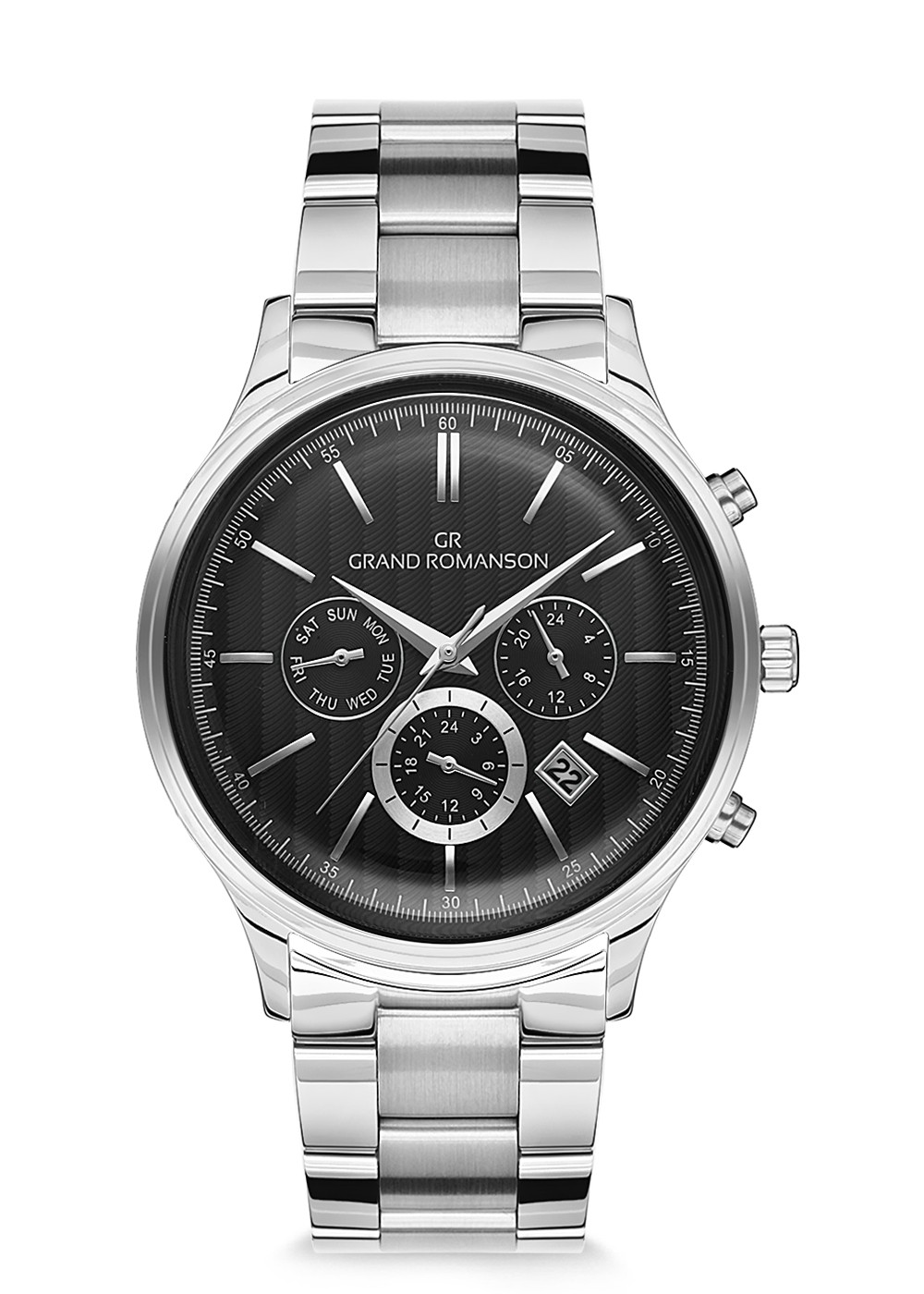 Erkek - Multi̇ Fonksi̇yon - Gümüş - Si̇yah - Paslanmaz Masi̇f Çeli̇k - 3 Atm - Sertleşti̇ri̇lmi̇ş Mi̇neral Cam - Grand Romanson
