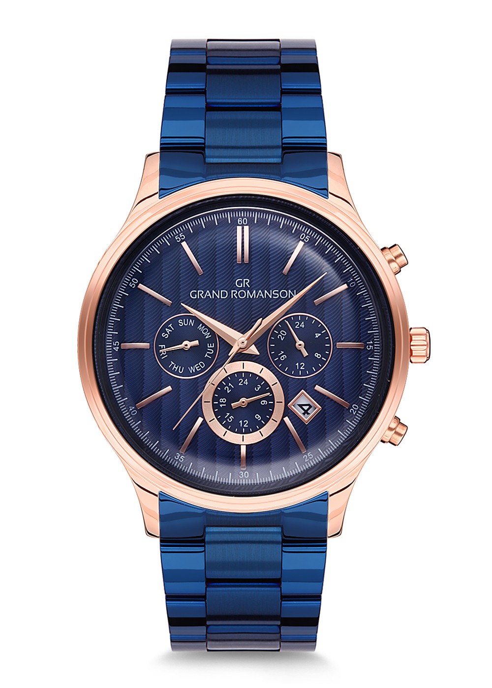 Erkek - Multi̇ Fonksi̇yon - Rose Mavi̇ - Mavi̇ - Paslanmaz Masi̇f Çeli̇k - 3 Atm - Sertleşti̇ri̇lmi̇ş Mi̇neral Cam - Grand Romanson