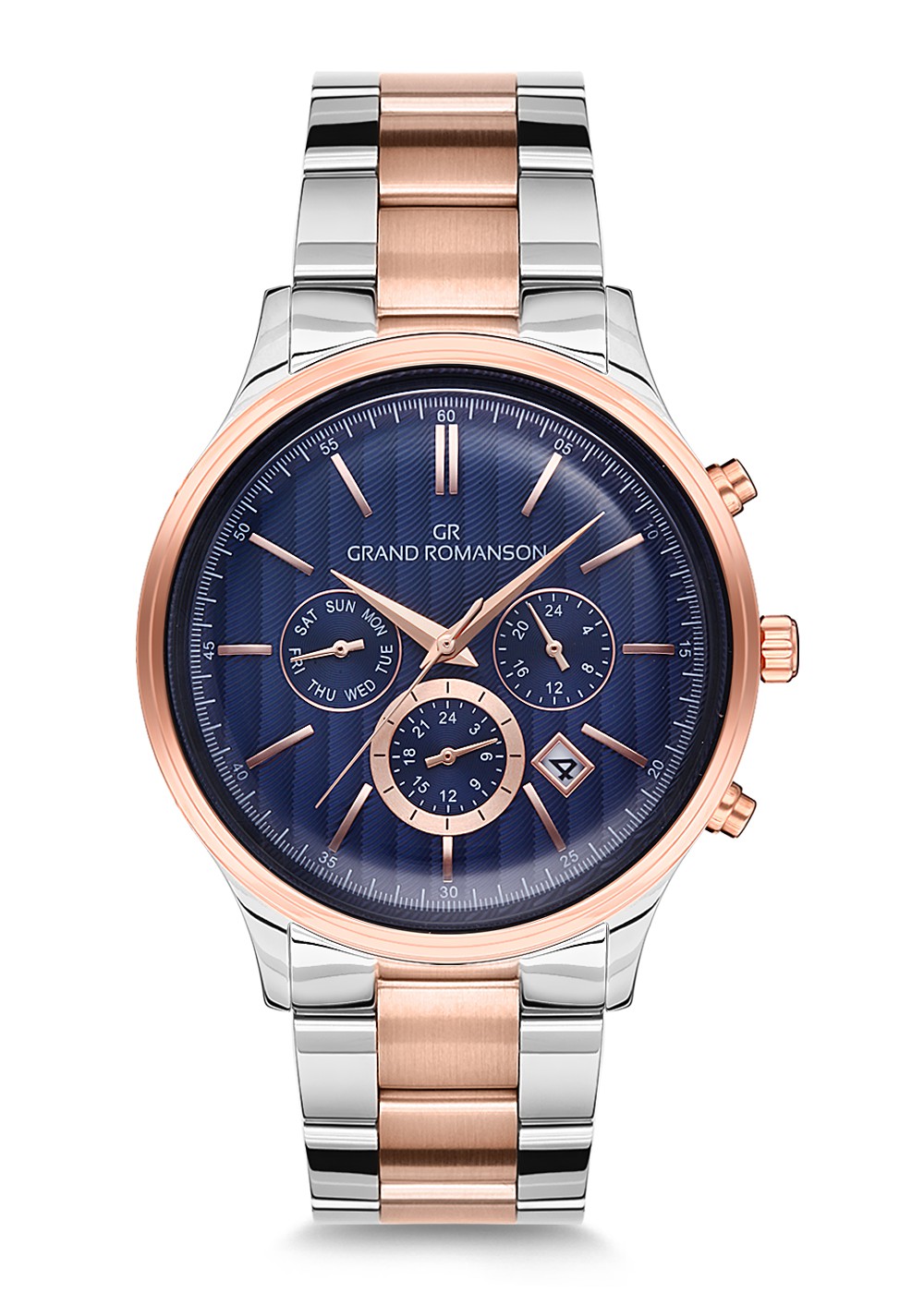 Erkek - Multi̇ Fonksi̇yon - Rose Beyaz - Mavi̇ - Paslanmaz Masi̇f Çeli̇k - 3 Atm - Sertleşti̇ri̇lmi̇ş Mi̇neral Cam - Grand Romanson