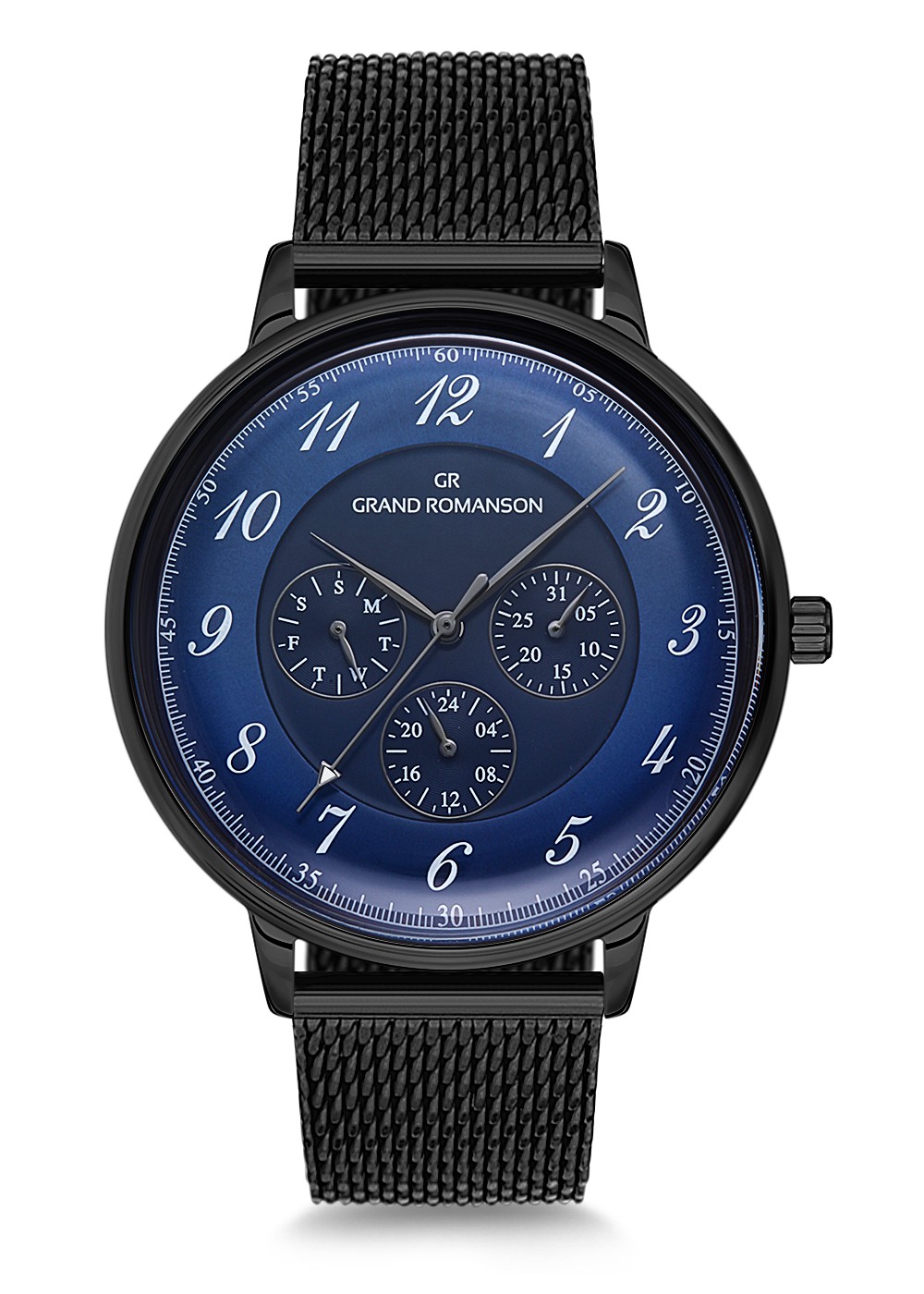 Erkek - Multi̇ Fonksi̇yon - Gun - Mavi̇ - Çeli̇k Örme Kordon - 3 Atm - Sertleşti̇ri̇lmi̇ş Mi̇neral Cam - Grand Romanson