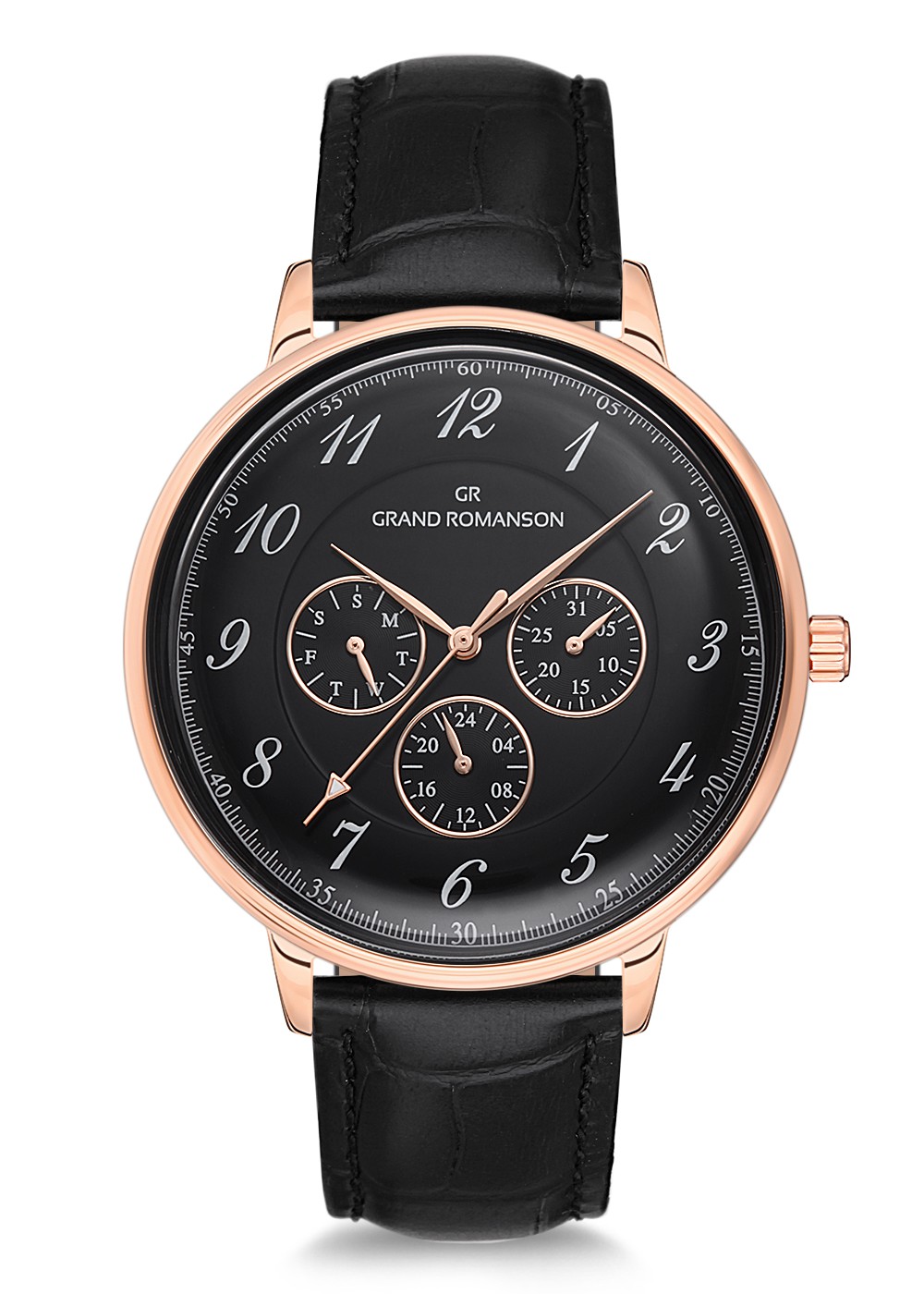 Erkek - Multi̇ Fonksi̇yon - Rose - Si̇yah - Doğal Deri̇ Kordon - Si̇yah - 3 Atm - Sertleşti̇ri̇lmi̇ş Mi̇neral Cam - Grand Romanson