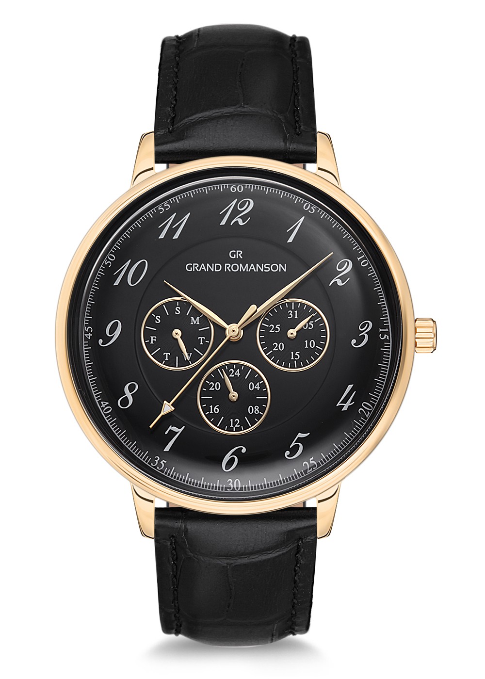 Erkek - Multi̇ Fonksi̇yon - Sari - Si̇yah - Doğal Deri̇ Kordon - Si̇yah - 3 Atm - Sertleşti̇ri̇lmi̇ş Mi̇neral Cam - Grand Romanson