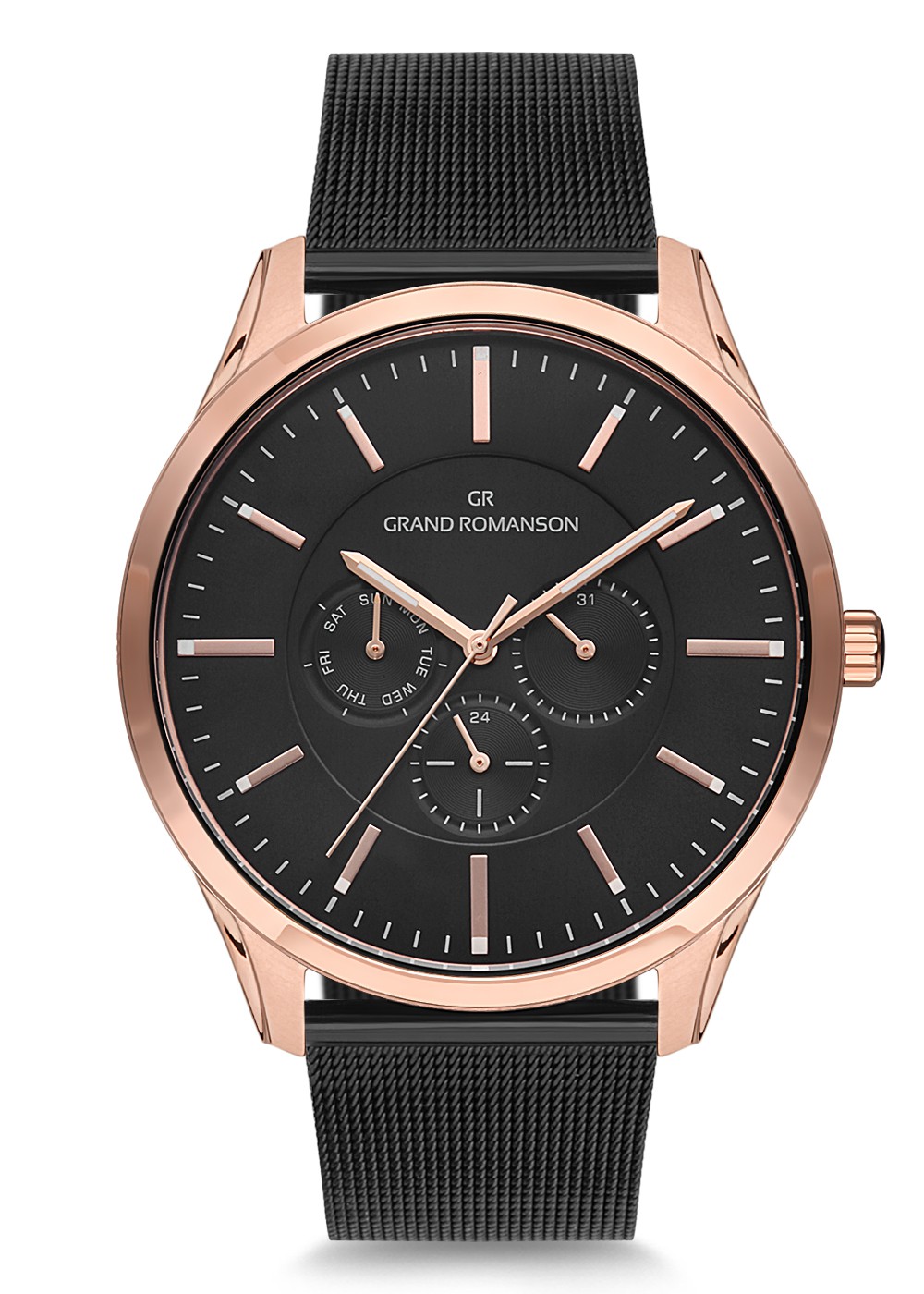 Erkek - Multi̇ Fonksi̇yon - Rose Si̇yah - Si̇yah - Çeli̇k Örme Kordon - 3 Atm - Sertleşti̇ri̇lmi̇ş Mi̇neral Cam - Grand Romanson