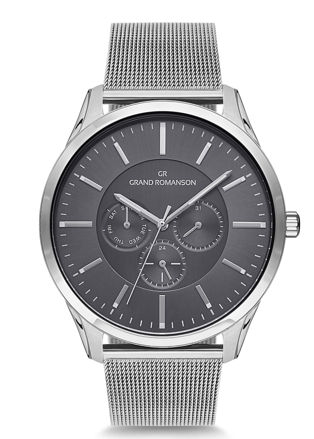 Erkek - Multi̇ Fonksi̇yon - Gümüş - Gri̇ - Çeli̇k Örme Kordon - 3 Atm - Sertleşti̇ri̇lmi̇ş Mi̇neral Cam - Grand Romanson