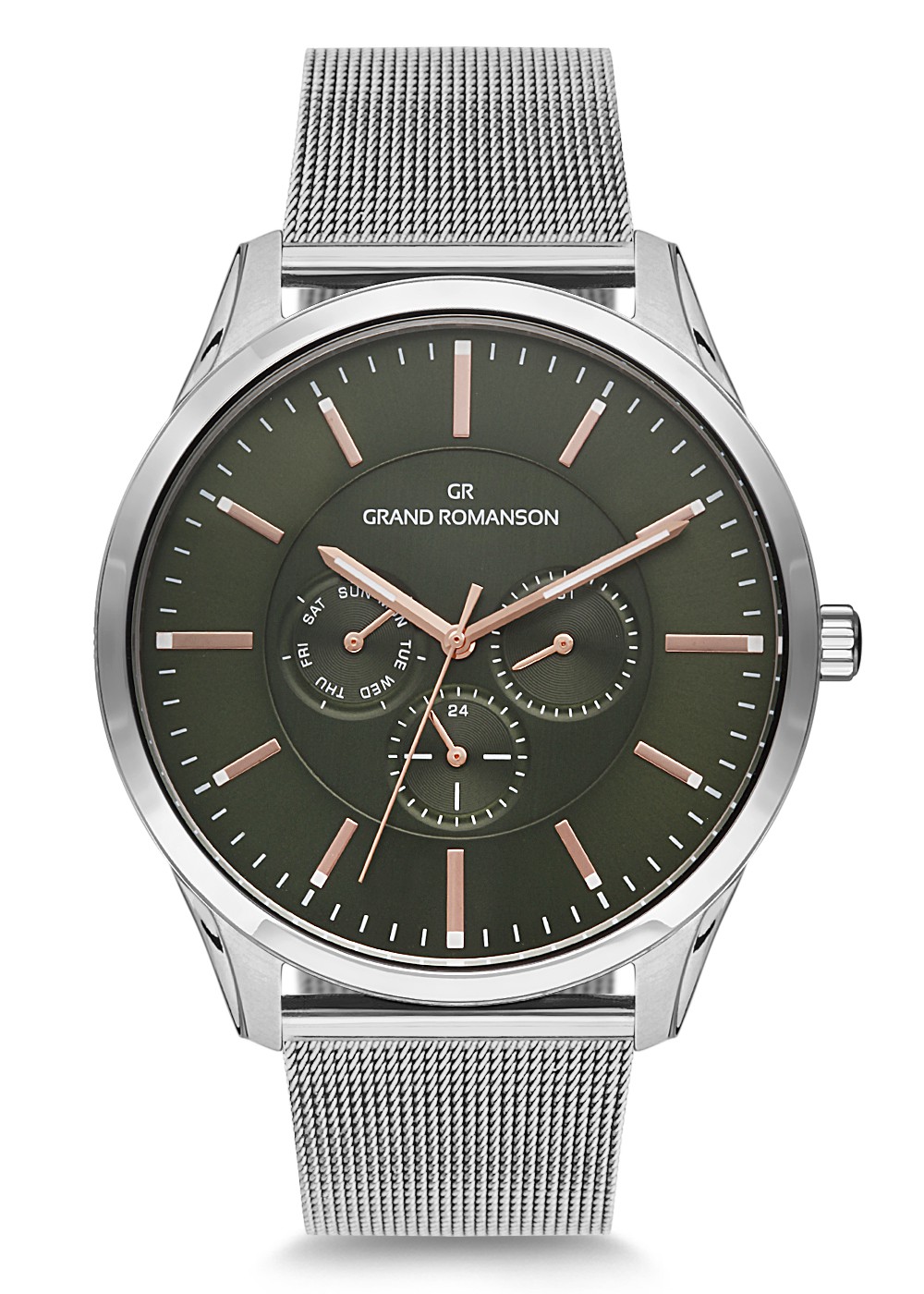 Erkek - Multi̇ Fonksi̇yon - Gümüş - Yeşi̇l - Çeli̇k Örme Kordon - 3 Atm - Sertleşti̇ri̇lmi̇ş Mi̇neral Cam - Grand Romanson