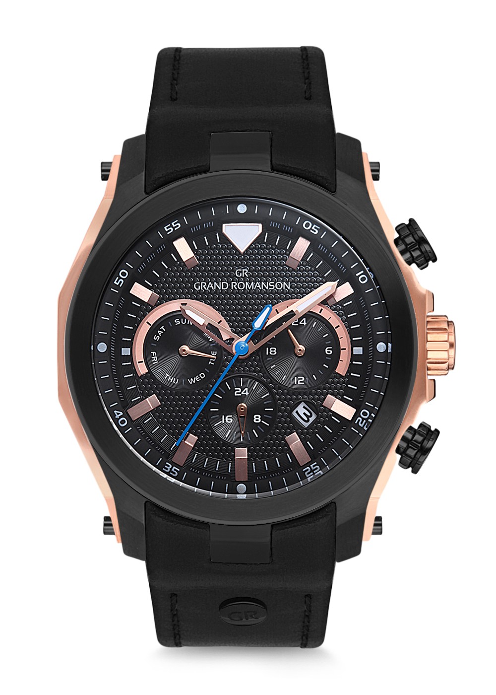 Erkek - Kronometre - Rose Si̇yah - Si̇yah - Doğal Deri̇ Kordon - Si̇yah - 3 Atm - Sertleşti̇ri̇lmi̇ş Mi̇neral Cam - Grand Romanson