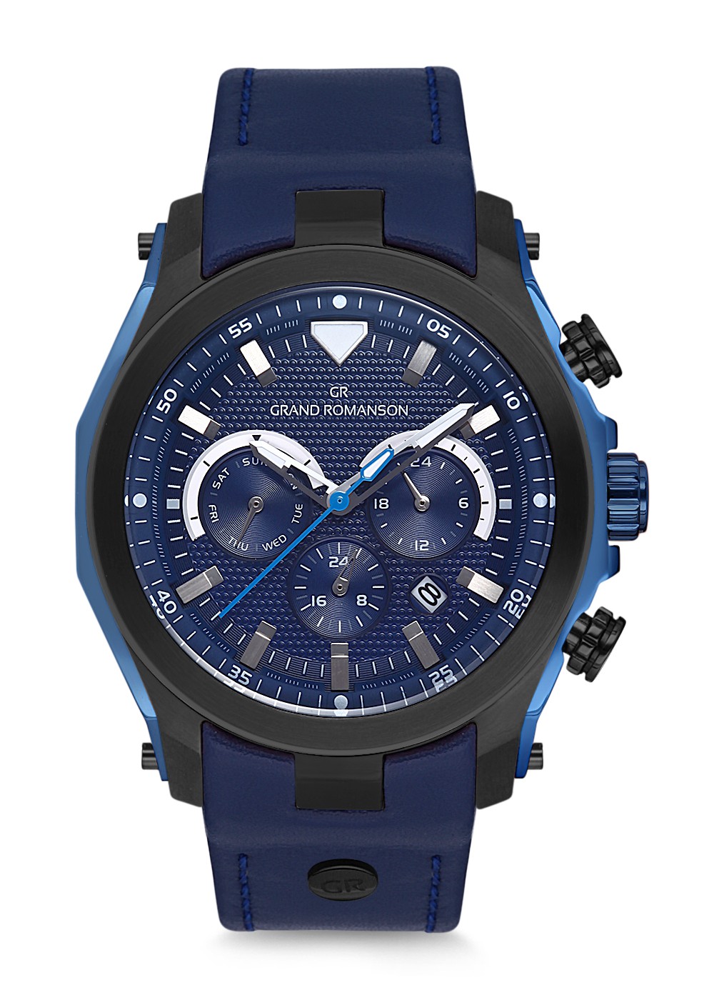 Erkek - Multi̇ Fonksi̇yon - Gun - Mavi̇ - Doğal Deri̇ Kordon - Mavi̇ - 3 Atm - Sertleşti̇ri̇lmi̇ş Mi̇neral Cam - Grand Romanson
