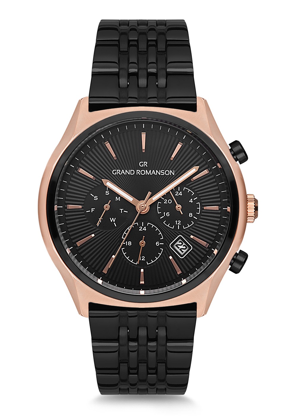 Erkek - Multi̇ Fonksi̇yon - Rose Si̇yah - Si̇yah - Paslanmaz Masi̇f Çeli̇k - 3 Atm - Grand Romanson