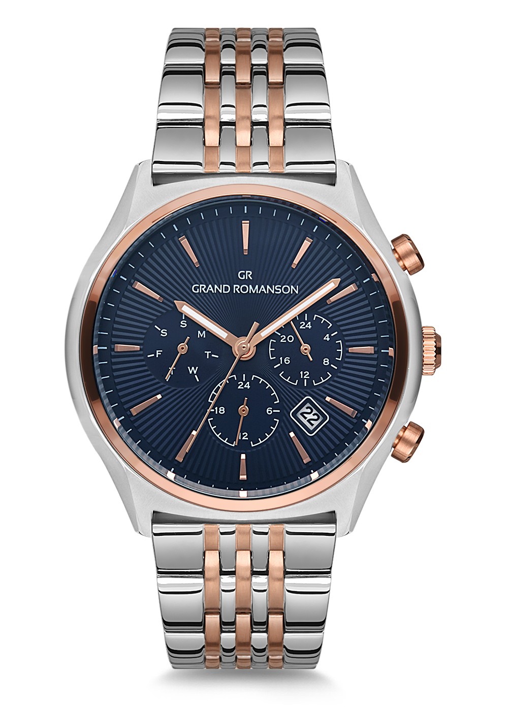 Erkek - Multi̇ Fonksi̇yon - Rose Beyaz - Mavi̇ - Paslanmaz Masi̇f Çeli̇k - 3 Atm - Grand Romanson