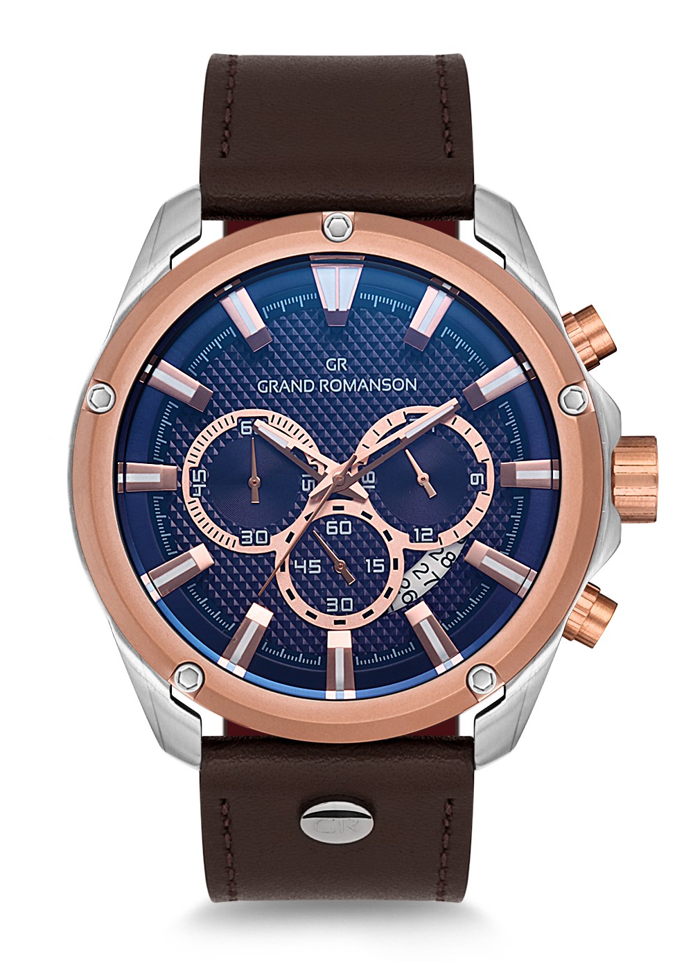 Erkek - Kronometre - Rose Beyaz - Mavi̇ - Doğal Deri̇ Kordon - Kahverengi̇ - 3 Atm - Sertleşti̇ri̇lmi̇ş Mi̇neral Cam - Grand Romanson