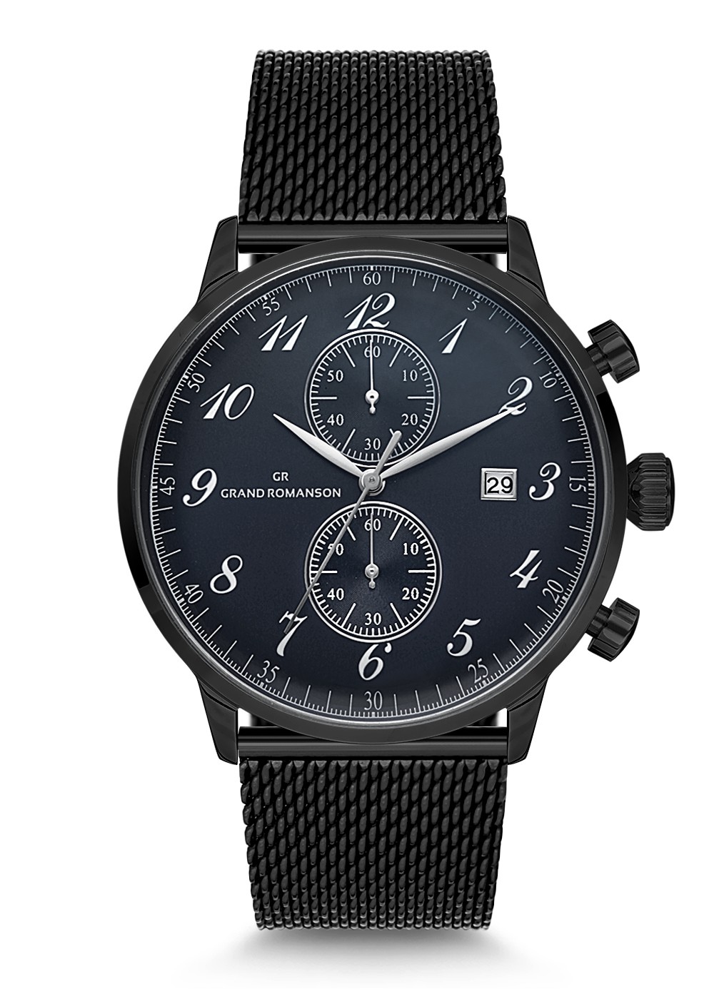 Erkek - Kronometre - Si̇yah - Si̇yah - Çeli̇k Örme Kordon - 3 Atm - Sertleşti̇ri̇lmi̇ş Mi̇neral Cam - Grand Romanson
