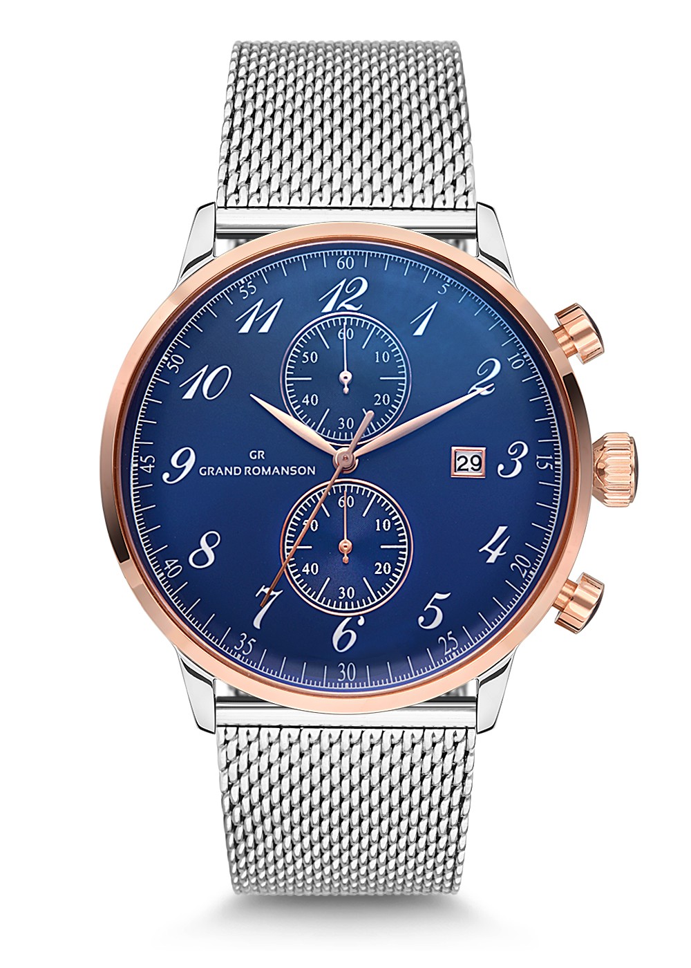 Erkek - Kronometre - Rose Beyaz - Mavi̇ - Çeli̇k Örme Kordon - 3 Atm - Sertleşti̇ri̇lmi̇ş Mi̇neral Cam - Grand Romanson