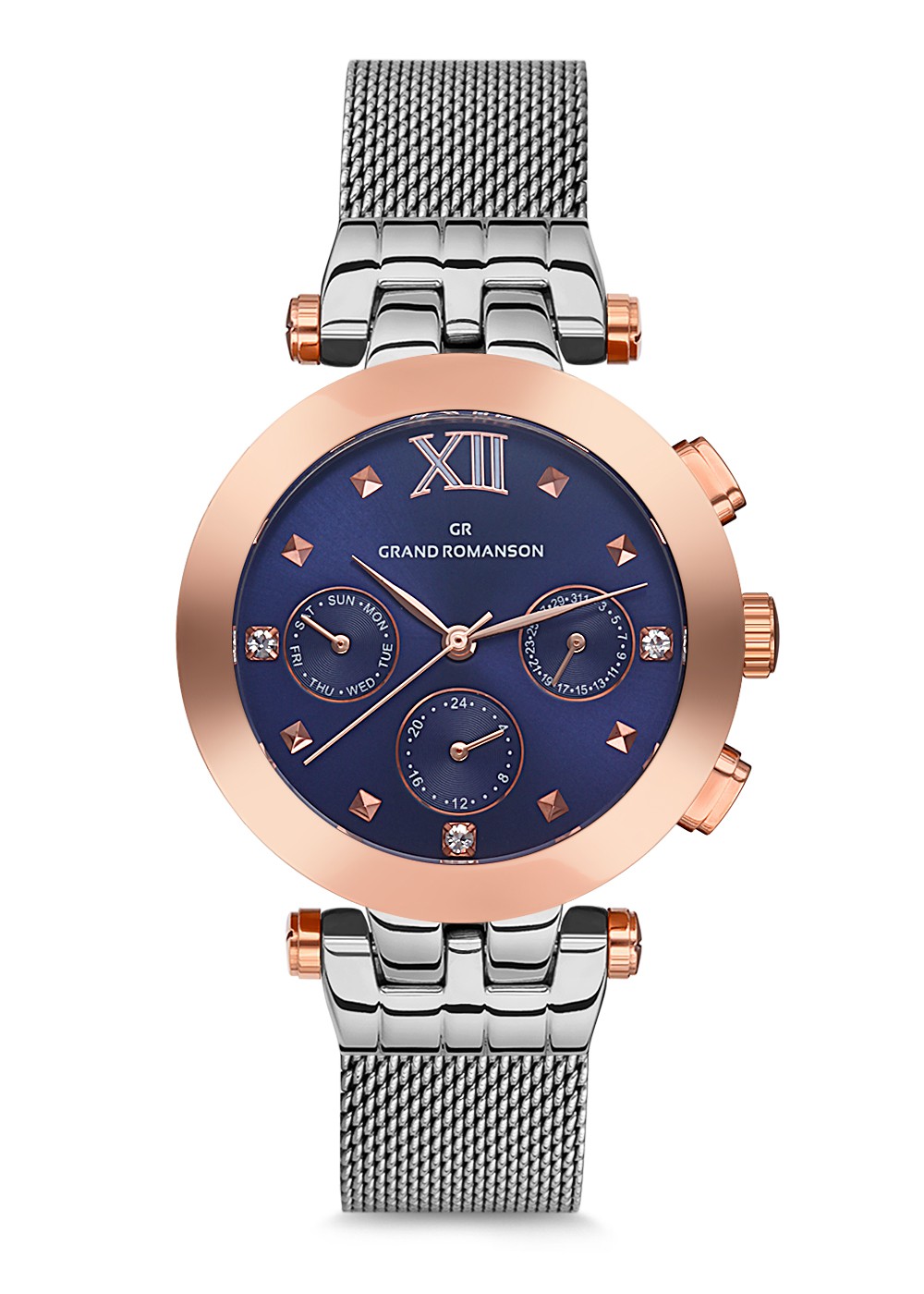 Kadın - Multi̇ Fonksi̇yon - Rose Beyaz - Mavi̇ - Çeli̇k Örme Kordon - 3 Atm - Grand Romanson
