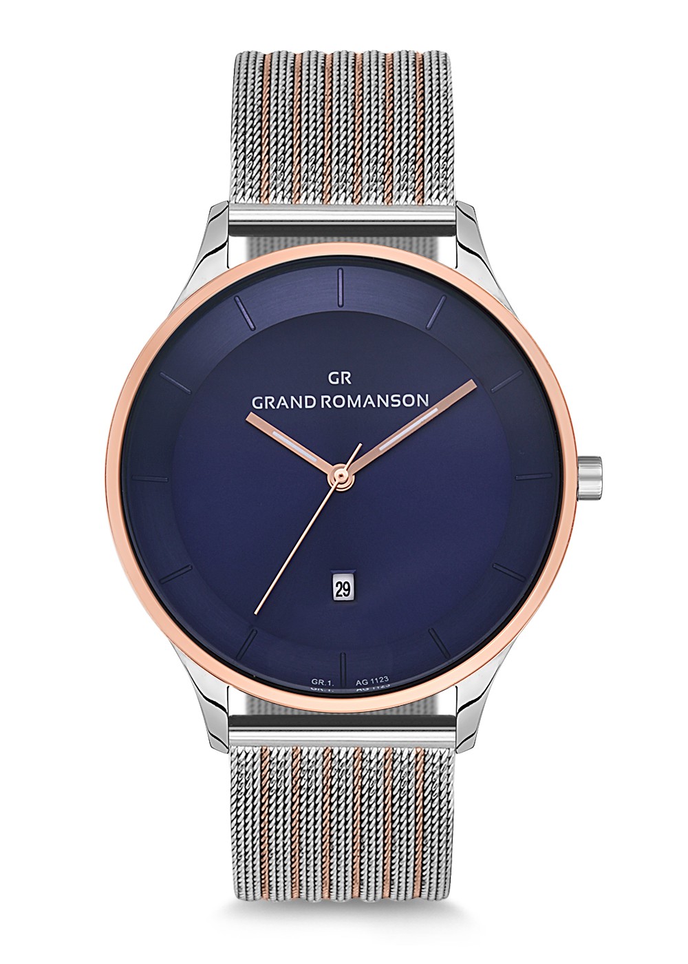 Erkek - Düz - Rose Beyaz - Mavi̇ - Çeli̇k Örme Kordon - 3 Atm - Sertleşti̇ri̇lmi̇ş Mi̇neral Cam - Grand Romanson
