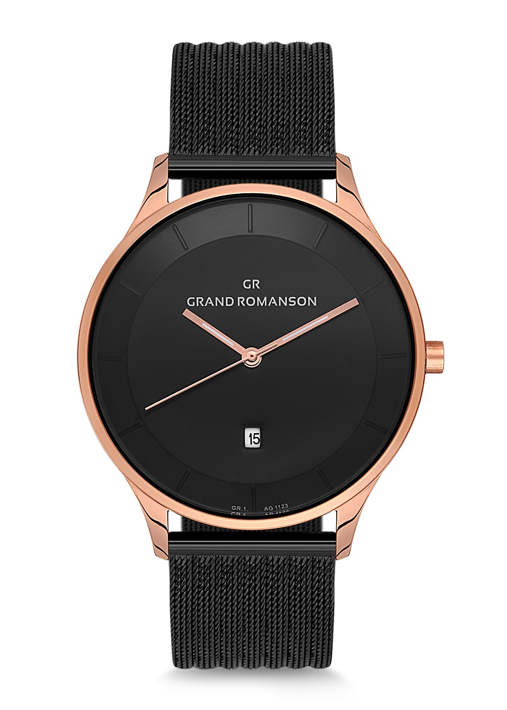 Erkek - Düz - Rose Si̇yah - Si̇yah - Çeli̇k Örme Kordon - 3 Atm - Sertleşti̇ri̇lmi̇ş Mi̇neral Cam - Grand Romanson