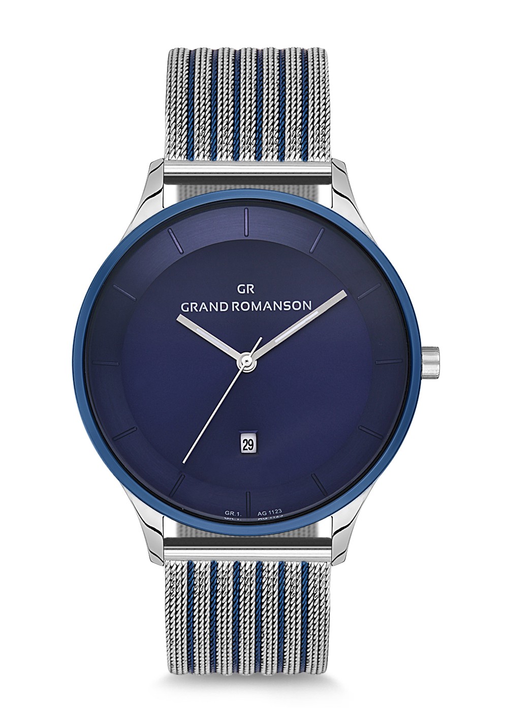 Erkek - Düz - Gümüş Mavi̇ - Mavi̇ - Çeli̇k Örme Kordon - 3 Atm - Sertleşti̇ri̇lmi̇ş Mi̇neral Cam - Grand Romanson