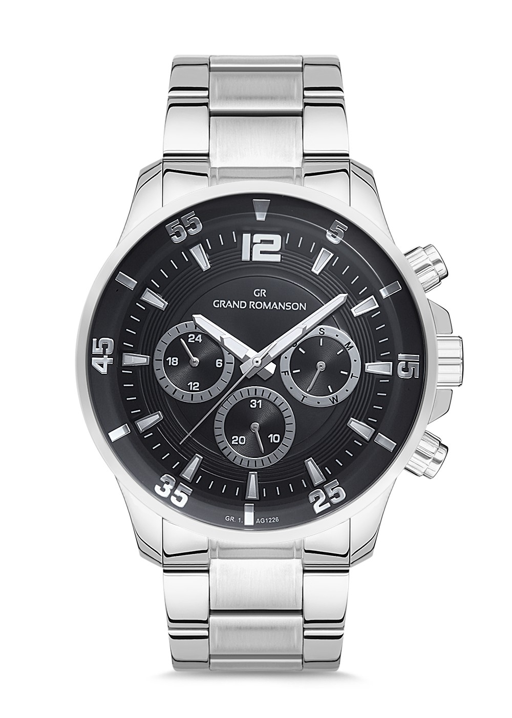 Erkek - Kronometre - Gümüş - Si̇yah - Paslanmaz Masi̇f Çeli̇k - 3 Atm - Sertleşti̇ri̇lmi̇ş Mi̇neral Cam - Grand Romanson