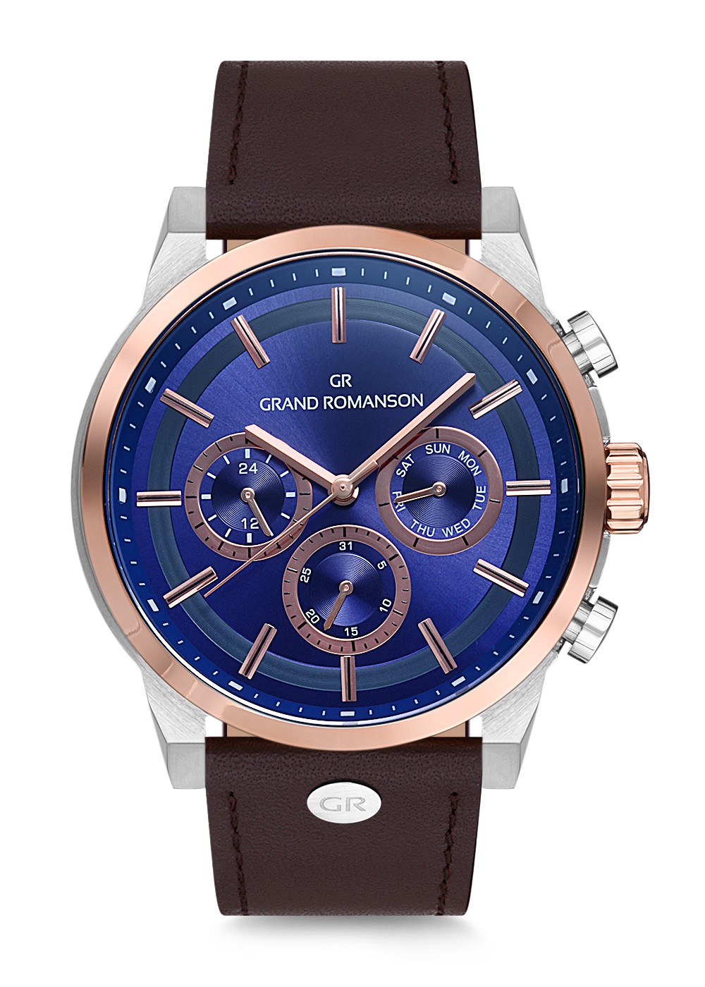 Erkek - Kronometre - Rose - Mavi̇ - Doğal Deri̇ Kordon - Kahverengi̇ - 3 Atm - Sertleşti̇ri̇lmi̇ş Mi̇neral Cam - Grand Romanson